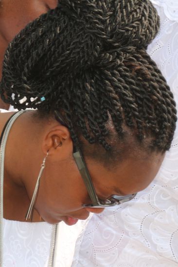 Als ich am späten Vormittag losging, bemerkte ich nach wenigen hundert Metern ungewöhnlich viele Autos am Straßenrand. Die Glocken der Kirche schlugen zur Hälfte des Tages. Da musste irgendwas sein, denn gerade an der kleinen Wegzweigung zur Kirche hatten sich etliche Autos und viele Menschen konzentriert. Da in dieser Richtung auch eine katholische Schule ausgeschildert war, dachte ich: geh doch mal gucken. Gedacht, getan. Die Schüler kamen gerade alle zur Pause aus ihren Gebäuden. Doch was ich vor der Kirche an Menschen- und Autoansammlung vorfand, das kam einer Großdemonstration gleich. Ich ging bis zur Kirche und warf einen Blick hinein. Sie war bis auf den letzten Platz gefüllt. Fünf Geistliche hielten dort vorn ihre "Ansprachen", es wurde Weihwasser auf irgendetwas gegeben. Ich glaubte, mich in einer Hochzeit wiederzufinden. So viele gut und ausgesprochen farbig bzw. weiß gekleidete Menschen - das konnte gar nichts anderes sein.