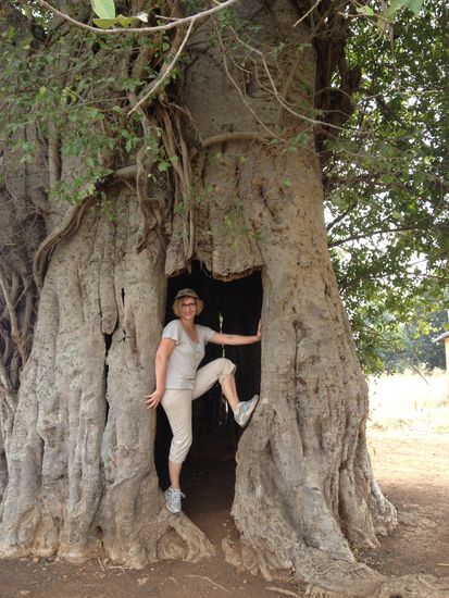 Kurz vor dem Ende unserer Wanderung führte uns Matthias zu einem Baobab, in den 10 Menschen reinpassen. Als ich drin stand in dem hohlen Baum, hatte ich den Eindruck, der würde auch 15 Leute fassen.