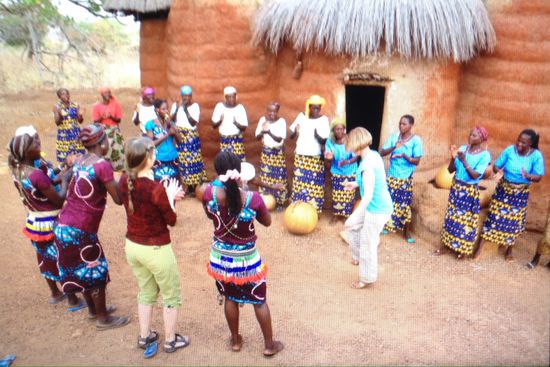Für den heutigen Abend standen traditionelle Tänze der Frauen der umliegenden Dörfer auf dem Programm. Eigentlich wollten die Frauen zur Lodge kommen. Da dort nun inzwischen aber so viele Menschen waren und dies eine gerbuchte Veranstaltung für uns war, änderten wir den Ort kurzerhand ab und gingen zu einem Haus des Dorfes. Dort angekommen, zogen sich die Frauen gerade noch um. Auf großen Kalebassen klopften sie rhythmische Töne und sangen dazu. Es waren keine festen Lieder. In einem Lied besangen sie das neue Jahr, in einem anderen dankten sie François dafür, dass er uns zu ihnen geführt hat. Dazu tanzten fünf Frauen. Meine Augen schauten ihnen von Anbeginn genau auf die Füße. Kurze Zeit später luden uns die Frauen ein, zu ihnen zu kommen und mit ihnen zu tanzen. Emma und ich waren sofort bei der Stelle. Erst tanzten wir in der Gruppe mit ihnen. Später tanzten immer zwei Frauen vor den Augen der anderen. Auch wir wurden dazu aufgefordert. Kann ich dazu nein sagen? Nein, und Emma auch nicht. So gaben wir unser Bestes, die Bewegungen der Füße, Arme und des Körpers nachzuahmen. Ich hörte von zwei meiner Tänzerinnen, ich mache das sehr gut. Sollte ich das glauben können? Doch auch Gerda, die uns zuschaute, meinte, ich hätte sehr professionell ausgesehen. Tja, vielleicht war ich in einem früheren Leben, wenn es so etwas gibt, doch in Afrika zu Hause?
