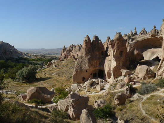 15.09.2012 - Seit 3 Tagen sind wir nun in Kappadokien. 2 Nächte waren wir im vorgebuchten Hotel Ariarathes und hatten das Glück, in der Suite untergebracht zu werden. Todschick, aber wer braucht das schon….Wir haben es freilich genossen und natürlich auch das leckere Frühstück auf der Dachterrasse mit Blick über Göreme.