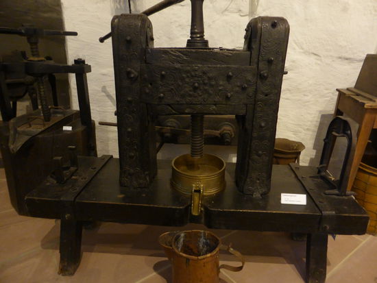 Etwas tiefer im Keller gelegen befindet sich das Laboratorium, in dem eine Sammlung - meist chemischer - Geräte zum Destillieren und Extrahieren ausgestellt ist.