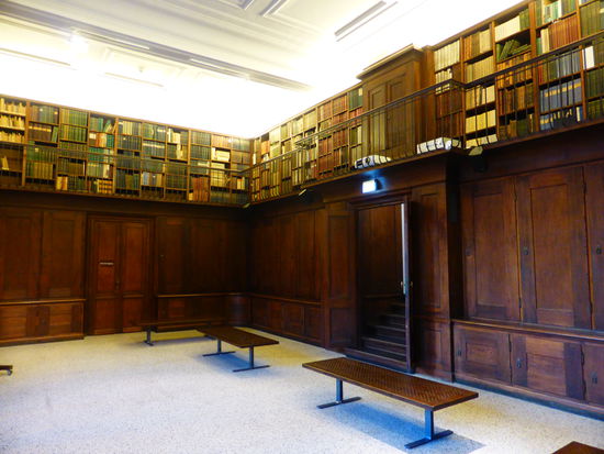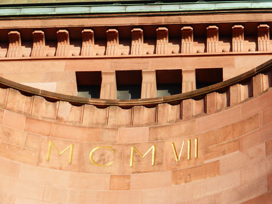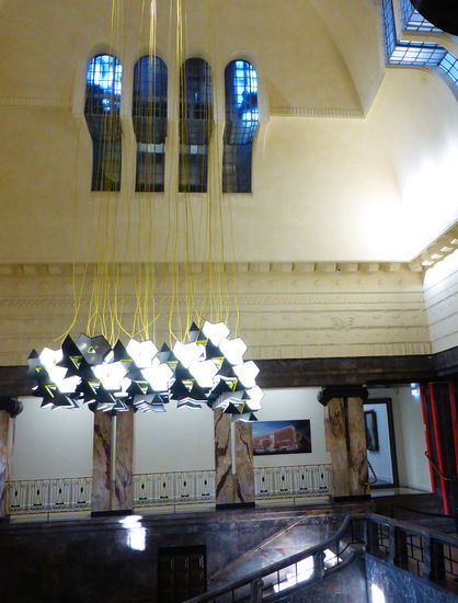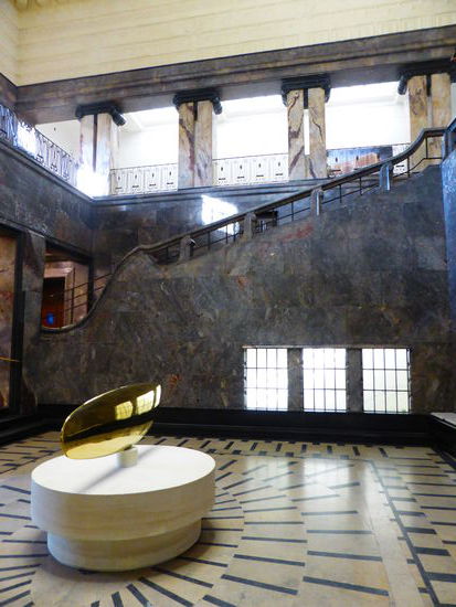 Im Inneren des Jugendstilbaus dominiert in der Vorhalle und im Treppenhaus Marmor.