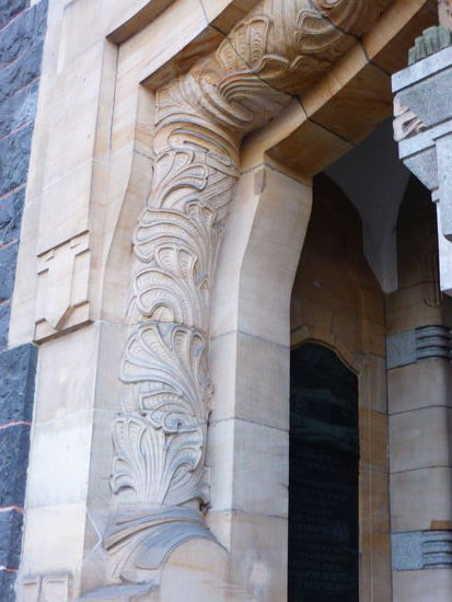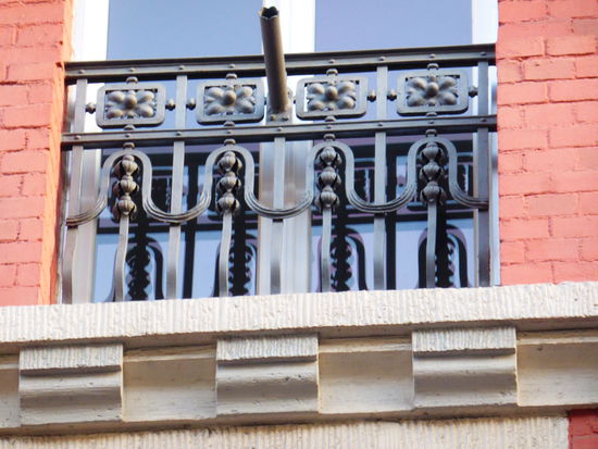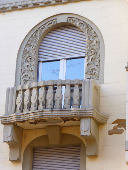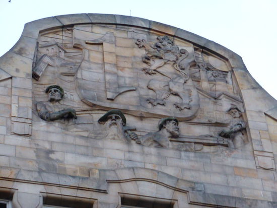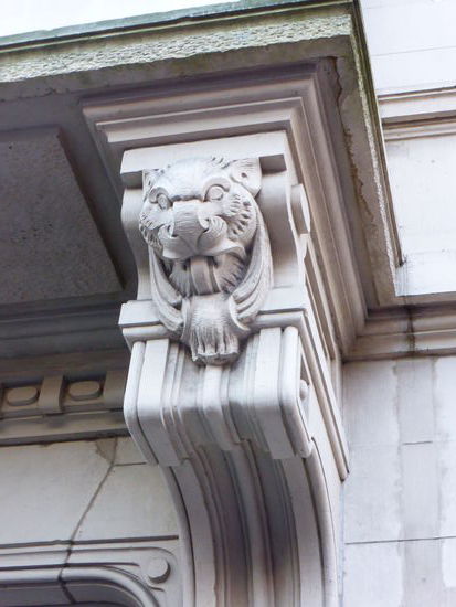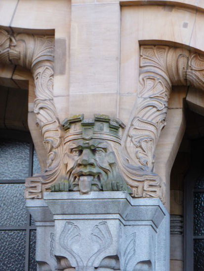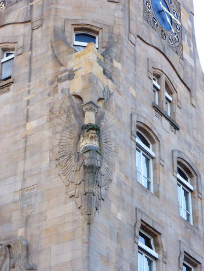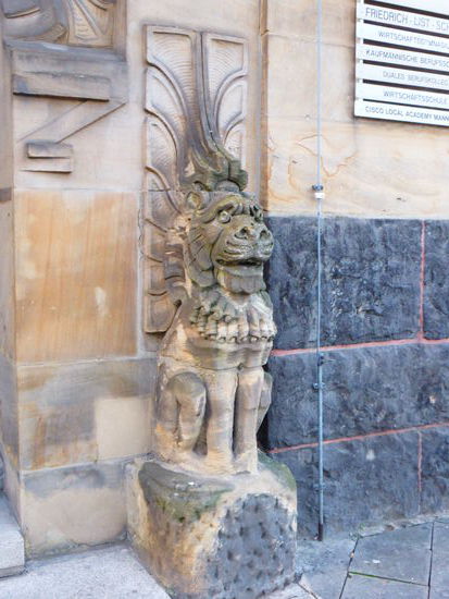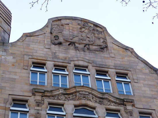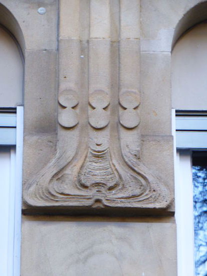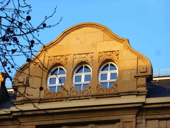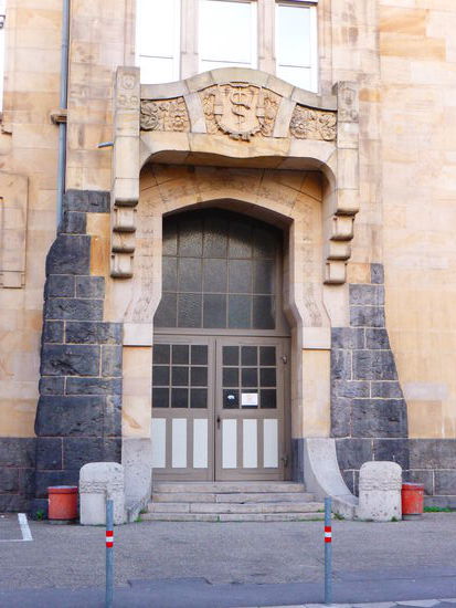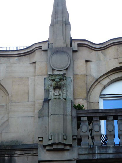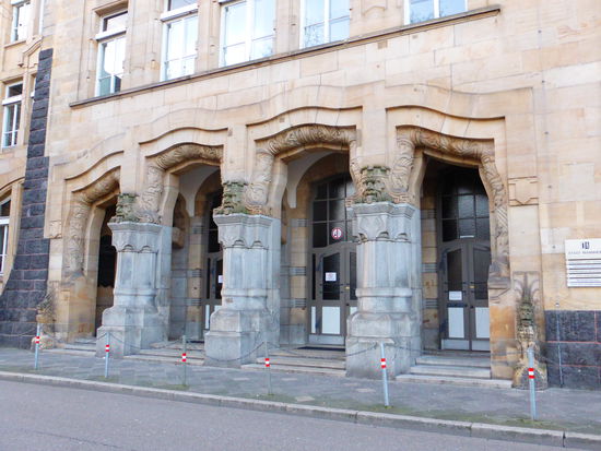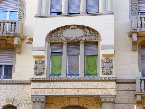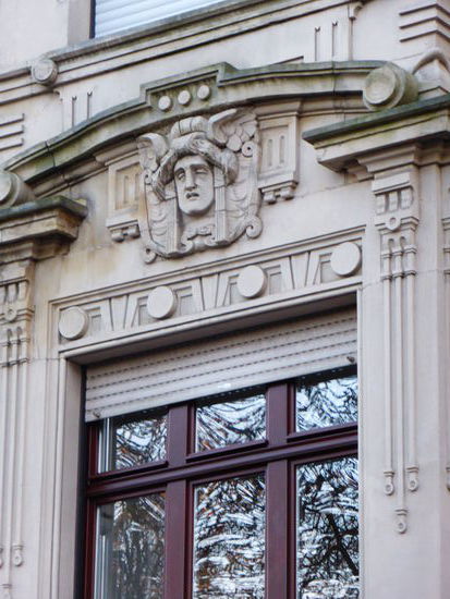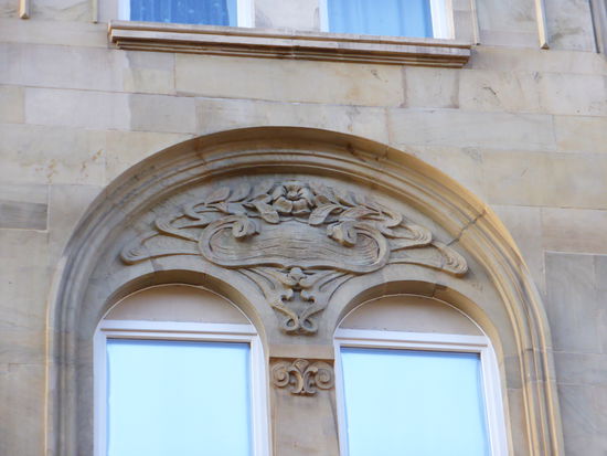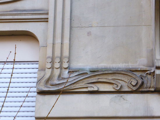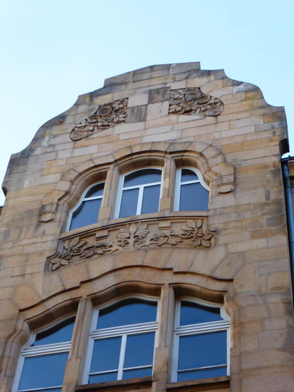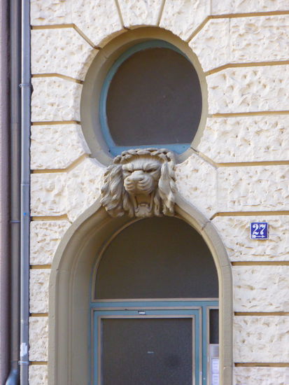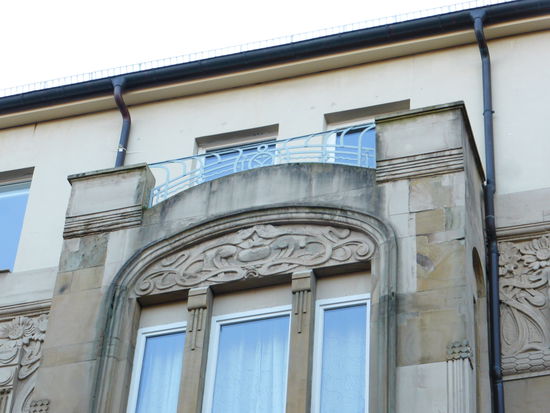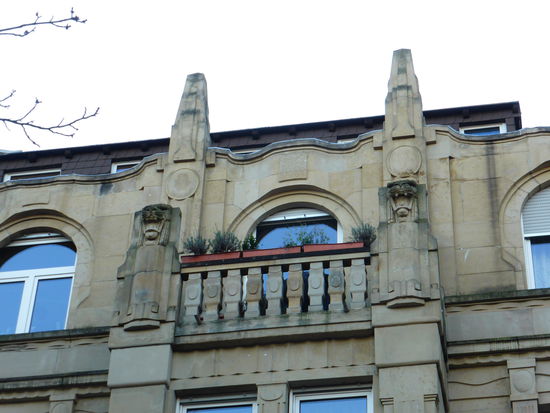 Hernach sollten/ wollten wir durch die Tullastrasse zum Haus Nr. 17 - vorbei an einer schönen Nichtjugendstilfassade einer Realschule gelangen wir dorthin, müssen aber feststellen, dass dort keine Jugendstilelemente an den beiden älteren Häusern zu finden sind.