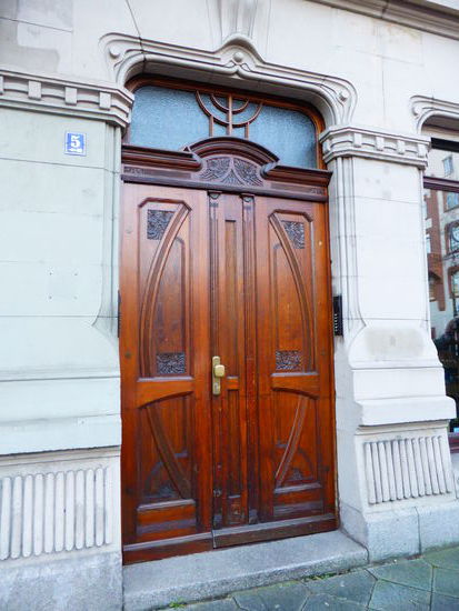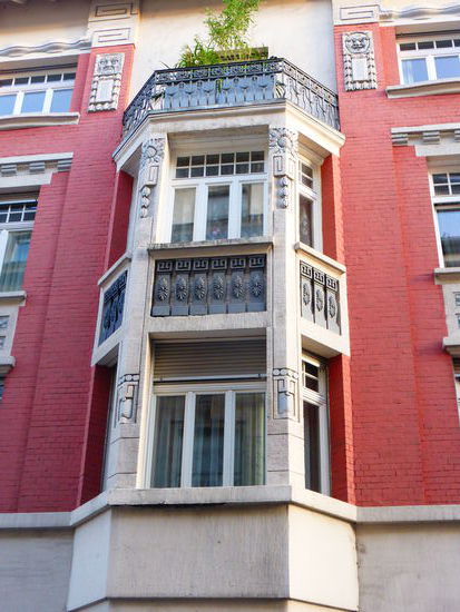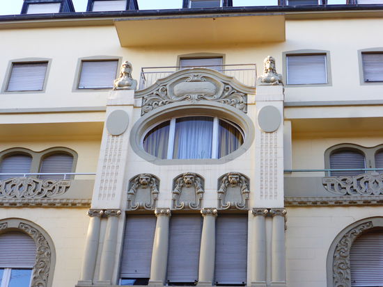 sagt uns unsere offline-map sagt uns, dass wir aus der Liste ganz in der Nähe die ersten Wohngebäude im Jugendstil finden: