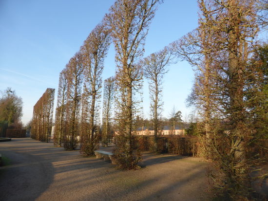 Letztlich stört es uns nicht, dass das Schloß z.Zt. nicht zu besichtigen ist. Da wir einen zwar kalten aber sonnigen Vormittag vor uns haben, nehmen wir uns den Schloßgarten vor. Auch hier ist alles für den Winter vorbereitet, d.h. die Brunnen sind eingepackt in Holzverschläge, die Kübelpflanzen in die Neue Orangereie verfrachtet. Trotzdem beeindruckt der Garten und insgesamt benötigt man mehr als zwei Stunden, um alle baulichen Exgtravaganzen zu sehen. Dazu gibt es immerhin zwölf Kapitel 'Schwetzingen hören' - auf die wichtigsten werden wir verweisen.