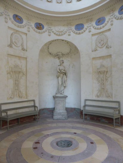 Am nördlichen Ende des Schloßparks - hier ist auch ein Eingang - befindet sich ein römisches Wasserkastell und der Tempel der Waldbotanik.