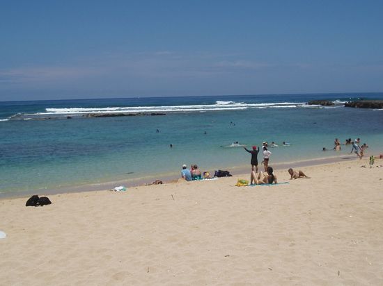 Vormittags geht es in den Norden zur Kuilima Cove beim Turtle Bay Resort. Hier kann man für 4$ vier Stunden parken. Die geschützte Bucht eignet sich sehr gut zum Schnorcheln, etliche Wasserschildkröten bevölkern das Revier.