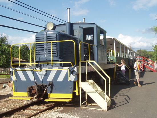 Nachmittags soll es zur Hawaiian Railway Society gehen, denn heute am Sonntag ist das Museum geöffnet und es finden auch Fahrten statt. Nach etwa 90 Minuten Fahrt ist das Museum bei Ewa erreicht, man muss auf recht kleine Hinweisschilder an Kreuzungen achten. Die Sammlung von Eisenbahnresten ist bemerkenswert, wenn auch manches Stück sicher nicht mehr lange den Elementen trotzen wird.