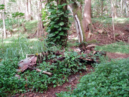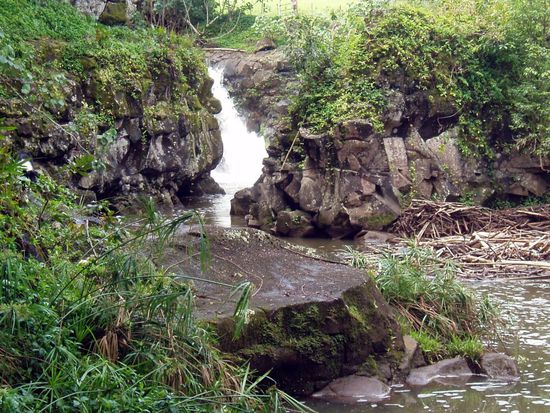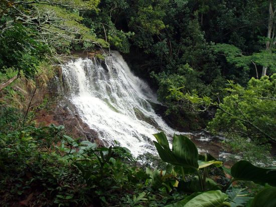 Heute steht ein Besuch der Hoopii Falls an. Am Anfang des Weges gibt es eine Abstellmöglichkeit für (wenige) Autos. Offenbar gibt es auch Leute, die mit dem Auto weiter fahren, aber dann keine Idee mehr haben, wie sie aus dem Tal herauskommen. Nach einiger Zeit sind die Autoreste dann gut in die Natur "integriert". Das Tal bietet eine eindrucksvolle Regenwaldkulisse, Höhepunkte sind die "großen" und die "kleinen" Fälle.