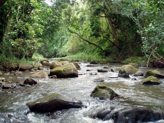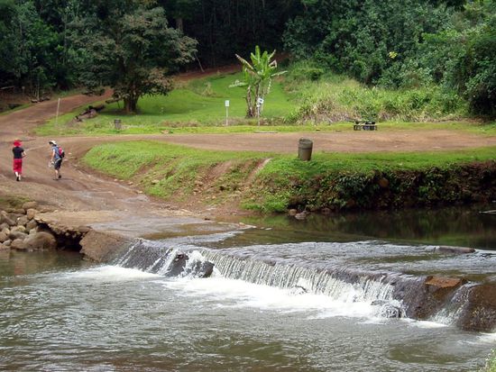 Am selben Tag möchte ich mich noch in der Umgebung des Keahua Arboretums umschauen. Die erste Furt führt ordentlich Wasser und auch der Weg danach sieht recht rustikal aus, also folge ich erst mal zu Fuß dem breiten Forstweg.