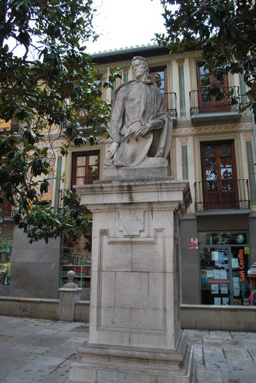 Heute habe ich nicht soviel Lust auf Kirche. Wäre ich doch nur länger drinnen geblieben ! Als ich nach einer halben Stunde wieder draußen bin, schüttet es wie aus Eimern. Natürlich habe ich keinen Schirm und auch die Kapuze meiner Jacke hatte ich bereits in Madrid ab-gezippt. Naja, es ist sehr später Nachmittag. Bis auf das kleine plastik-eingeschweißte Bus-Küchlein hatte ich heute noch nichts gegessen und eh Hunger. Ich befinde mich in der Altstadt Granadas uns ich beschließe, dass das nächste Restaurant meines ist. Genau das haben alle anderen auch gerade beschlossen, bzw. schon vor 30 Minuten, als ich noch in der Kathedrale weilte: Ich finde einfach keinen Platz in einem Restaurant ! Alles picke-packe voll ! Kurzfristig finde ich Zuflucht in einem Souvenir-Shop, wo ich eine kleine Stier-Figur kaufe (dabei hatte ich seit gestern doch eigentlich genug von Stieren...) Letzten Endes ist es mir jetzt völlig egal, durch den strömenden Regen laufe ich zum Hotel, wo ich pudelnass eintreffe.