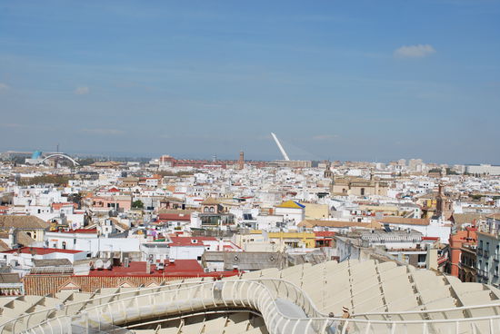 und die Aussicht ist eine der besten von ganz Sevilla ! Über spektakuläre Stege läuft man rundherum und sieht von oben die ganze Stadt aus Bilderbuch-Perspektive.