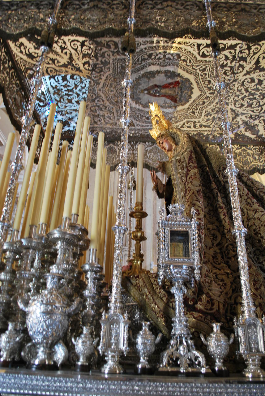 Aber auch hier stehen schon die Sänften mit den Heiligenfiguren für die Semana Santa parat und werden geputzt, geschmückt und poliert.