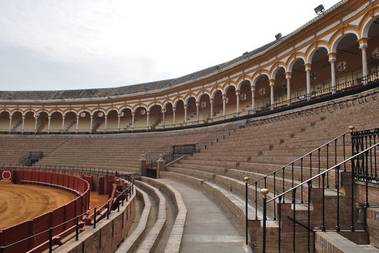 Zwar hatte ich ja schon in Madrid "Las Ventas" besichtigt, aber da war ja gerade der Zirkus in der Arena und ich wollte unbedingt noch eine Arena pur. Und die von Sevilla soll ja auch eine der größten und berühmtesten Spaniens sein, deswegen versprach ich mir etwas von diesem Besuch. Und mit Führung fand ich jetzt auch gar nicht sooo schlecht, weil es ja interessante Hintergrundinformationen hätte geben können.