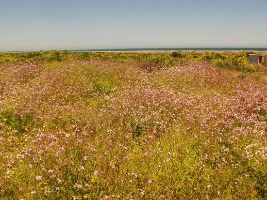 Am Meer weht eine steife Brise. Die Sonne ist heiß und der Wind eisig.