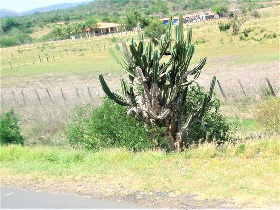 Später wird es dann etwas flacher und trockener. Riesige Kakteen stehen am Straßenrand.