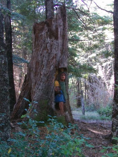 Um die Farm herum gibt es Wege, an denen Künstler ihre Holzskulpturen hinterlassen haben.