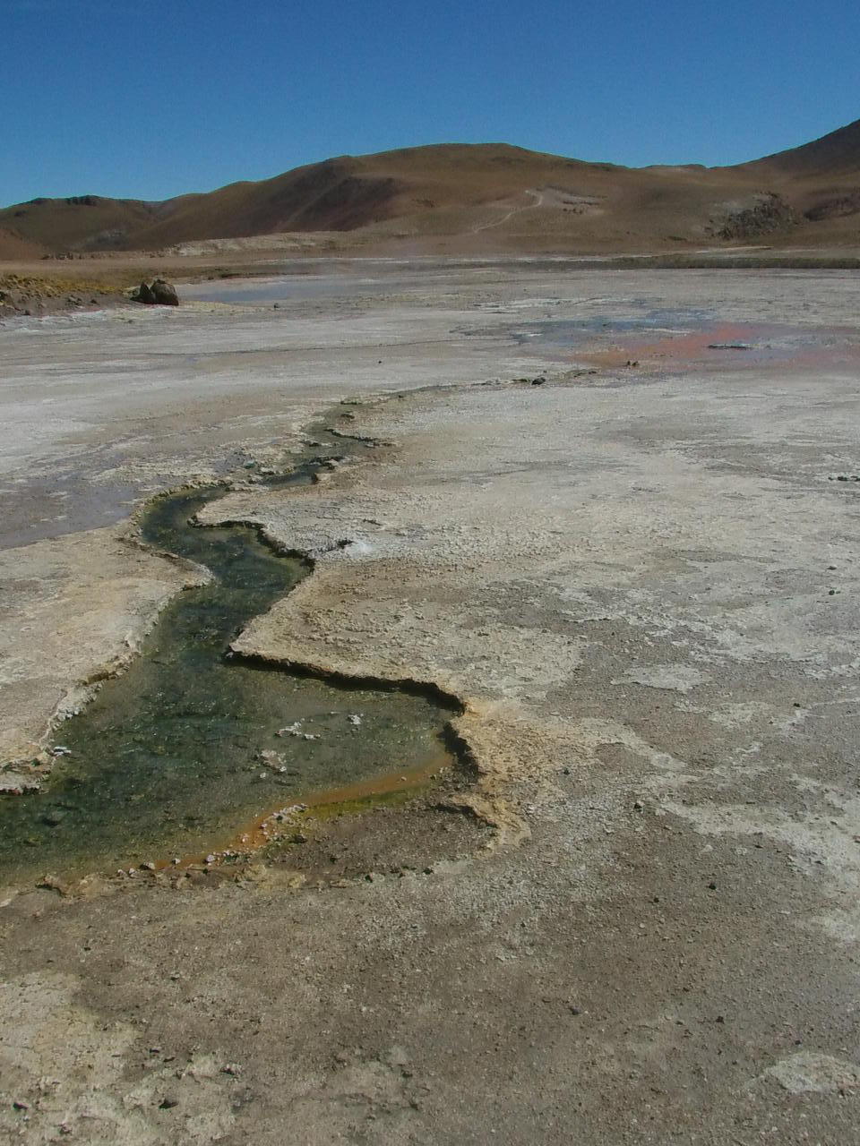 Hier kann man baden. Während am Einlauf das Wasser kochend heiß ist, hat es 1m daneben angenehme Temperaturen.