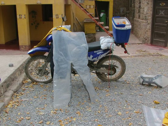 Außerdem habe ich in warme Anziehsachen investiert. Auf dem Markt gab es Secondhand Wahre. Ich habe zwei Thermohosen, eine dicke Jacke und eine Oma gekauft. Jetzt kann ich auch morgens bei Minusgraden fahren. Die Tour über die Berge von Chile nach Argentinien war mir eine Lehre gewesen.