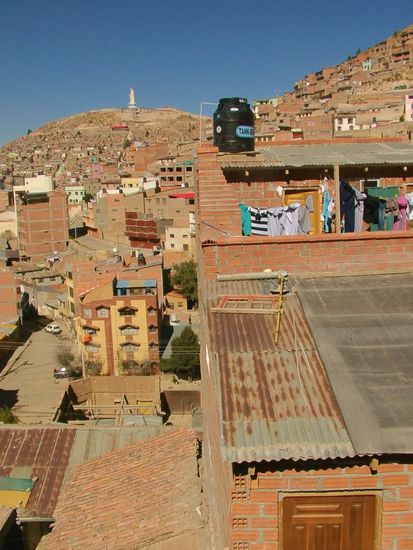 Am nächsten Morgen liegt Schnee auf den Dächern und zwei Fahrräder stehen vor dem Nebenzimmer. Richtig - das französische Radlerpärchen. Von ihnen erfahre ich, das man sein Visum kostenlos verlängern kann und es soll wohl auch in Oruro möglich sein. Ich checke das im Netz und finde eine Seite mit der betreffenden Behörde. Sie ist nur 500 m von mir entfernt, also los. Nach etwas hin und her finde ich die richtige Stelle. Ich muss zwei Kopien von meinem Reisepass besorgen und bekomme sofort und ohne zu warten 30 Tage Verlängerung eingestempelt. Super, jetzt muss ich nicht mehr so düsen.