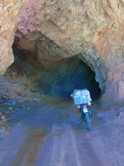 An einer größeren Höhle bin ich schon in Versuchung einmal hinein zu fahren. Aber dann fallen mir die Berichte von den Grubenunglücken in Südamerika ein und ich lasse es lieber bleiben.
