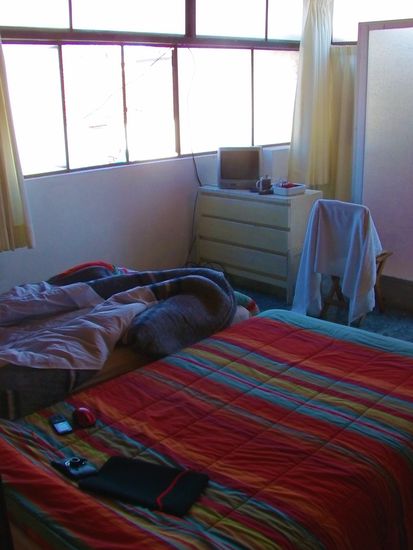 Es ist mehr ein Apartment als ein Zimmer, groß, hell und geräumig, mit Garage und Frühstück für 70 Bol. Na gut, man gönnt sich ja sonst nichts. Bei den anderen Hostels war es wieder schwierig, das Motorrad unter zu bringen.