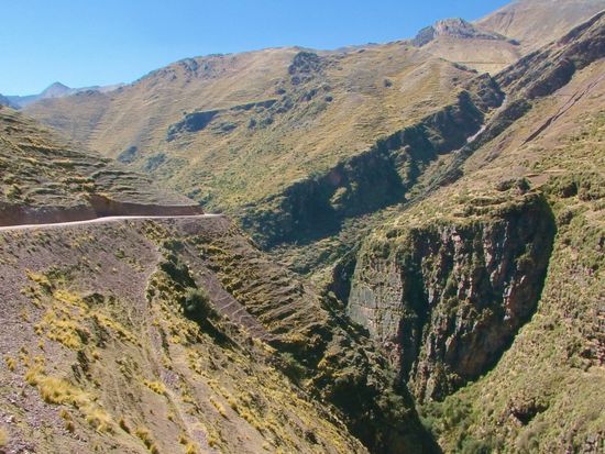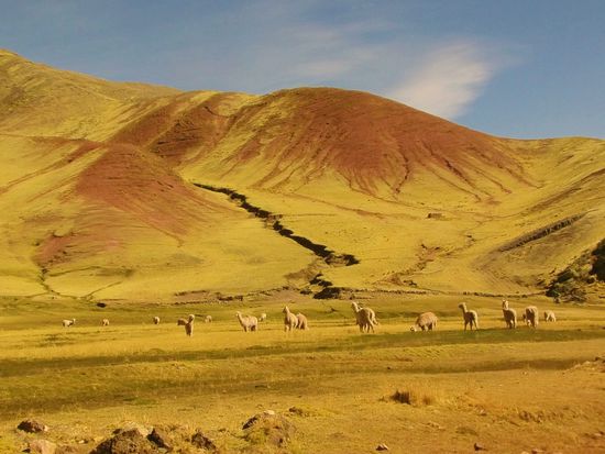 Im letztem Dorf mache ich Mittagspause und erkundige mich nach den "Siete Colors". Je nachdem wo man hin möchte, währen es zwei bis drei Stunden zu laufen. Ich bin mir nicht sicher, ob es wirklich der Platz vom Foto ist, aber diese Natur hier ist so  wunderschön, das ich beschließe nach Cusco zurück zu fahren, um später für ein paar Tage länger zurück zu kommen. Man kann auch Pferde mit Führer mieten, was 60 - 80 Sol kostet und vielleicht besser für mich geeignet ist. Super.