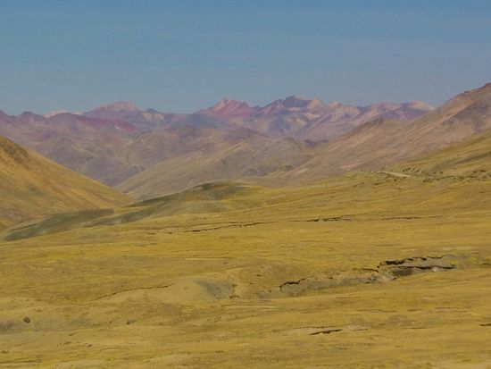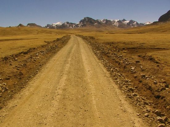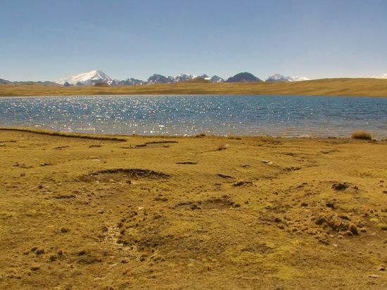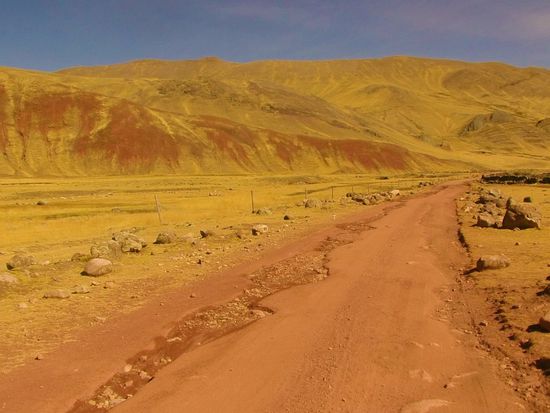 Ich erreiche einen See. Es ist aber nicht der von mir erhoffte. Mein Navi zeigt mir nur grob an, wo ich bin und langsam frage ich mich, ob der Sprit reicht. Ich habe hier kaum Menschen gesehen und ob die mir ihr Benzin verkaufen, wenn sie überhaupt welches haben, erscheint mir fraglich. Auch ist mir nur ein Auto begegnet. Wenn ich den Maßstab vom Navi nehme, dann sind es vielleicht noch 100 km bis zur nächsten größeren Ortschaft. Ich muss aber jeden Moment auf Reserve umschalten und dann habe ich noch Sprit für 50 km. Allerdings bin ich auf 5000m Höhe und die Straße nach Cusco lag bei 3500 m. Es muss also irgendwann bergab gehen.