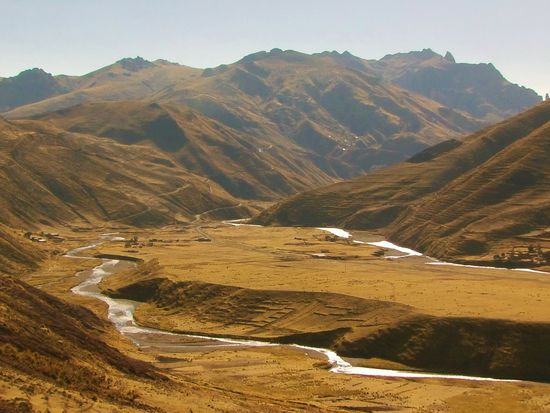 Ich bin früh auf den Rädern. Die Chinesin hat wieder guten Sprit bekommen und ich habe den Vergaser noch einmal korrigiert. Jetzt springt sie wie ein junges Fohlen. Schon beim Verlassen von Cusco bietet sich ein herrlicher Ausblick.