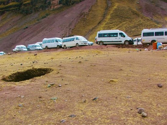 Dort angekommen, finde ich ca. 20 Minibusse vor, was auf eine tägliche Besucherzahl von 200 Personen schließen lässt. Ich erkundige mich, wann die Masse der Leute losgeht und wann sie zurück sind. Ich müsste also vor allen andern starten oder danach.