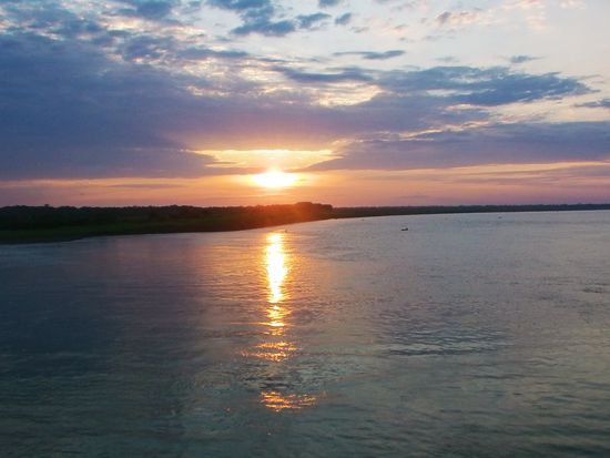 Dieses Mal fahren wir die Nacht durch. Der Fluss ist breiter und tiefer geworden, das Beiboot wurde eingeholt.