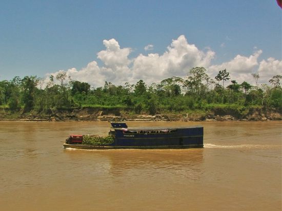 Ich habe beschlossen nicht weiter nach Leticia zu fahren. Der Fluss wird jetzt immer breiter und das Wetter immer feuchter. Die Touren in den Regenwald scheinen zu teuer zu sein. Trotzdem frage ich mal im Hafen nach, was die Fahrt kosten würde. Man sagt mir 50 Sol für zwei Nächte und einen Tag.