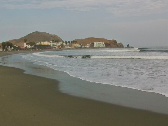 Am Nachmittag hatte ich Cerro Azul erreicht. Nichts besonderes, genau das Richtige für mich. Ein kleiner Badeort mit wenig Tourismus, umgeben von Wüste und einer schmalen, grünen Oase entlang des Flusses. Der Strand war okey, das Hotel super, guter Preis, gutes Internet und der Besitzer sprach Englisch.