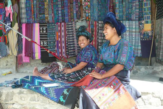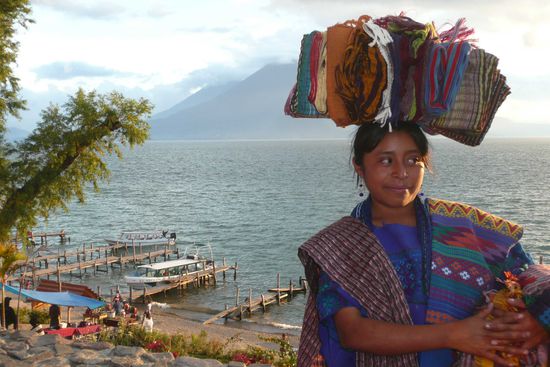 In Santa Catarina Palopo kann man die Frauen an der Straße zum See an den Rückenbandwebstühlen bei der Arbeit bestaunen, bekleidet in ihren wunderschönen Textilien, die zu den schönsten, traditionellsten und farbenfrohsten ganz Mittelamerikas zählen. Seit Jahrhunderten werden mit diesen einfachen Webstühlen komplizierteste Muster gezaubert. Der Verkauf von Andenken und Tüchern trägt so zum Einkommen bei.