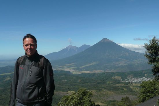 Von Panajachel ging es sehr mühevoll mit einem japanischen Kleinbus zur heimlichen Hauptstadt Guatemalas, nach Antigua. Wir kamen erst bei Dunkelheit an und mussten uns sehr schnell für eine Unterkunft entscheiden, da es in dieser Stadt immer wieder zu Überfällen kommen kann. Wie immer hatten wir Glück und fanden eine nette Absteige und ich buchte sofort (um 23 Uhr) die Besteigung des Vulkans Pacaya für den nächsten Tag – Start der Tour um sechs Uhr. Die meisten der mehr als 30 Vulkane Guatemalas erheben sich über den indianischen Dörfern des Hochlands. Außer den Vulkanen rund um den Lake de Atitlan und den Rauchfahnen des Vulkans Fuego bei Antigua zieht vor allem der Vulkan Pacaya südlich der Hauptstadt Guatemalas die besondere Aufmerksamkeit auf sich und natürlich auch auf mich. In einer Tagestour konnte ich diesen durch seine beständige Aktivität bekannte Vulkan erklimmen und die aktiven Lavaströme und die atemberaubenden Ausblicke auf die umliegenden Vulkane (Agua, Acatenango, Fuego) bewundern.