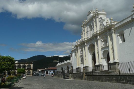 Die ehemalige Hauptstadt Antigua ist ein städtebauliches Meisterwerk, das auf Grund seiner außerordentlichen kulturellen und künstlerischen Bedeutung 1979 von der UNESCO zum Weltkulturerbe der Menschheit erklärt wurde. Ausladende Paläste, Plazas mit gepflegten Grünanlagen, pastellfarbene restaurierte Adels- und Bürgerhäuser, überreich dekorierte Kirchenfassaden und dazu passend die bunten Textilien, die Indigenas in den malerisch mit Natursteinen gepflasterten Gassen feilbieten, das macht den Zauber dieser knapp 50.000 Einwohner zählenden Stadt aus. Eine gewaltige durch ein Erdbeben ausgelöste Schlammlawine des Vulkans Agua begrub 1541 die damalige Stadt, die jedoch noch schöner und größer wieder aufgebaut und sogar zur Hauptstadt erklärt wurde. Weitere Erdbeben 1717 und vor allem 1773 legte die blühende Stadt jedoch in Schutt und Asche. Südöstlich wurde eine neue Hauptstadt gegründet. Die Bürger gaben die Stadt jedoch nie ganz auf, bauten ihre Häuser mit den reizenden Innenhöfen wieder auf und nannten die kunsthistorische Perle fortan "die Alte": La Antigua.