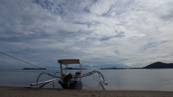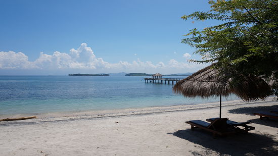 Vom Flughafen ging es dann mit dem Taxi durch finsterste Nacht und über teils absurd steile Strassen in die südwestliche Ecke der Insel nach Sekotong. Heimat für die nächsten 3 Nächte sollten die Krisna Bungalows direkt am Meer sein. Bei Lichte betrachtet am nächsten Morgen gabs zwei Erkenntnisse. Die günstige Unterkunft blieb wie sie ist: einfach aber recht sauber mit viel zu kurzem Moskitonetz, einer ab dem Morgengrauen nervigen Strasse direkt hinter den Bungalows (nachts herrscht aber tatsächlich absolute Ruhe), richtig guter Küche (die man übrigens auch benötigt, da weit und breit nichts ist) und traumhaftem Ausblick auf diverse vorgelagerte Inselchen mit dem meist wolkenverhangenen Rinjani im Hintergrund und die Westküste Lomboks.