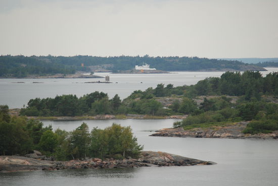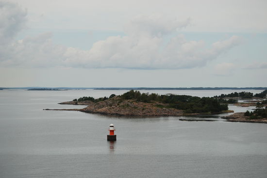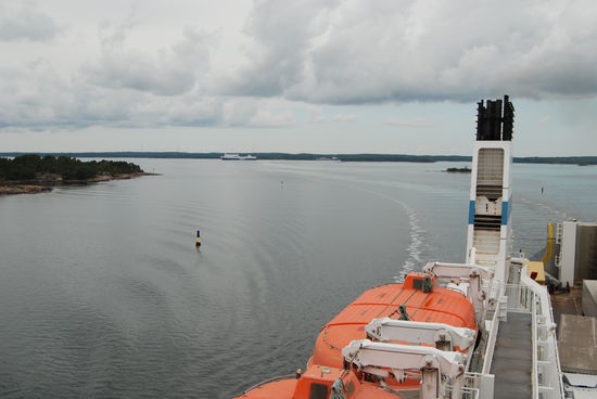 Um 9.30 Uhr legte unser Schiff ab, und los ging es bei spiegelblanker See durch die äußeren Stockholmer Schären. Beim Leuchtturm Tjärven begann die offene See. Nun konnten wir in Ruhe duschen und ein bißchen Schlaf nachholen, wo wir doch so früh aufstehen mußten. Die Zeit verging wie im Flug. Schon bald fuhren wir in den Ålandskärgård ein. Mariehamn ließen wir an Backbord liegen. Gegen 14 Uhr legten wir in Långnäs an. An Deck beobachteten wir, wie weitere Fahrzeuge auf die Fähre fuhren. Wir blieben draußen, und weiter ging die Fahrt durch das Skärgårdshavet, das Schärengartenmeer. Das ist ein tolles Erlebnis, zwischen den vielen Inseln hin- und herzufahren. Der Fahrweg in den Schären ist nur selten gerade. Inzwischen war es windig geworden, so daß es draußen nicht mehr so gemütlich war. Doch aus dem Kabinenfenster konnte man ja alles bestens verfolgen. Ich nutzte die Zeit zu einem kleinen Mittagsschlaf. Im nu war es 17 Uhr finnischer Zeit, und es gab Mittagessen. Nun waren wir bald am Ziel, um 19 Uhr legten wir in Nådendal/Naantali an. Der Weg zum Campingplatz war gut ausgeschildert und nur kurz. Der Platz kostete mit Camping-Karten-Rabatt für zwei Personen mit Auto, Wohnwagen und Strom pro Nacht 32€, der höchste Preis der Reise. Es gab viele Hütten, sie kosteten zwischen 50 und 100€ pro Nacht. Toiletten und Duschen waren knapp und nicht sehr sauber.
