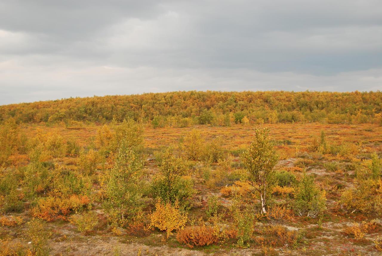 Die Straße war sehr wenig befahren, so daß wir immer wieder anhalten konnten, um Fotos zu machen. Je weiter und höher wir kamen, desto kleiner wurden die Bäume, und es gab fast nur noch Birken. Leider verschwand die Sonne immer wieder, so daß die Farben nicht so leuchteten. Aber es war trotzdem wunderschön. Es gab immer wieder Parkplätze, die auf einem alten Straßenabschnitt lagen. Auf einem solchen machten wir Kaffeerast. Hier hätte man auch sehr gut übernachten können, aber es war noch zu früh. In Utsjoki gingen wir dann auf den Campingplatz. Gebühr 22,50 € mit El. Er gehörte einem Samen, mit dem wir uns gut verständigen konnten. Die Nähe zu Norwegen machte sich in dieser Hinsicht positiv bemerkbar. Morgen wollen wir den geologischen Naturpfad gehen und danach den Tag ruhig ausklingen lassen.