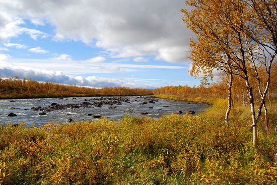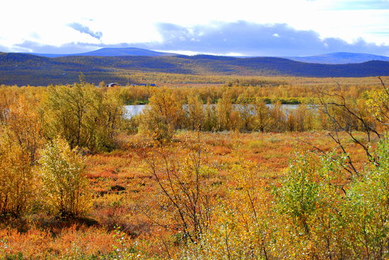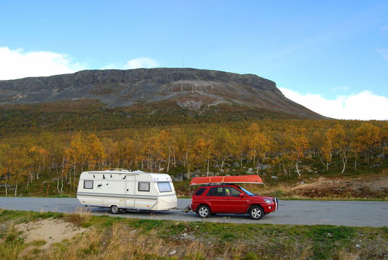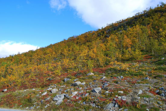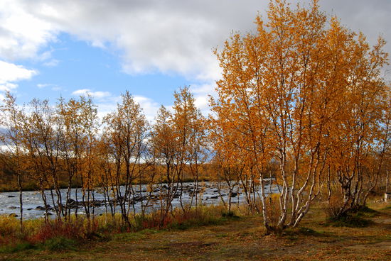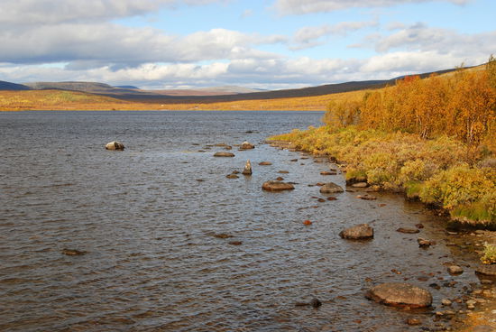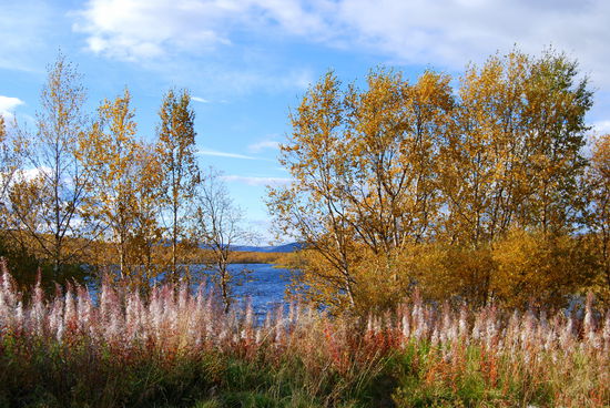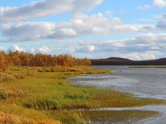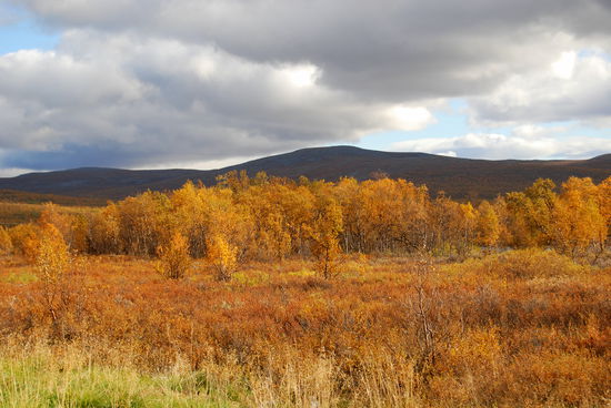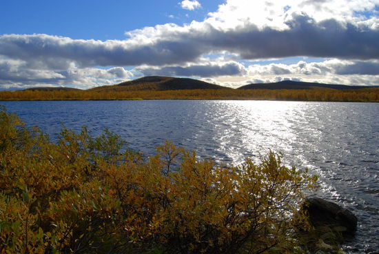 Nun hatten wir die Chance, doch noch alle Berge und die Landschaft im Sonnenlicht zu sehen, zu schön! Es war aber auch erstaunlich, wie schnell die Farbenpracht verging. Viele Pflanzen, die vor drei Tagen noch rot waren, wurden jetzt braun. Viele Birken warfen die Blätter ab, manche wahre schon kahl. Die erste Strecke bis Palojoensuu kannten wir ja schon, und sehr viel weiter würden wir wohl auch nicht kommen. An vielen schönen Plätzen hielten wir an, um Fotos zu machen, oder um z.B. Kaffee zu trinken. In einem Lappenladen kaufte Rainer noch ein Ripa (Schneehuhn). Watt mutt datt mutt!
