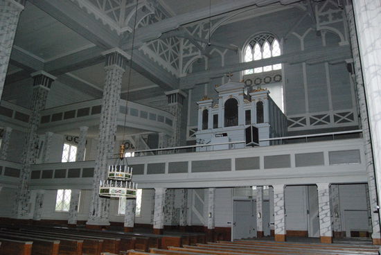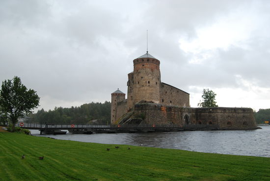 Kühl ist es geworden, nur noch 15°. Wir fuhren nach Kerimäki zur größten Holzkirche der Welt. Wunderbar gepflegt steht sie da, immer wieder schön anzusehen. Rundherum ist es nun stark bebaut, Supermärkte und Restaurants. Unten am einstmals idyllischen Hafen liegen Freizeitboote dicht an dicht. Weiter ging die Fahrt nach Savonlinna/Nyslott. Wir wollten die Burg Olavinlinna/Olofsborg besuchen. Der starke Regen trieb uns erst einmal in eine Pizzeria. Sie wurde im Reiseführer empfohlen und war auch wirklich sehr gut. Im Führer (2 Jahre alt) stand, Pizza ab 5,50 €, jetzt gibt es sie ab 8,80 €. Ein Deutscher, der hier lebt, sagte uns, daß die Russen die Preise hochtreiben. Sie kommen in Scharen und bringen das Geld. Sattgegessen fuhren wir dann zur Burg. Hätten wir nur nicht gegessen, dann wären wir auch reingekommen. Um 15 Uhr wurde sie geschlossen. So konnten wir sie uns nur von außen ansehen. Dabei fing es wieder an zu regnen, es schüttete wie aus Eimern, aber zum Glück nicht allzu lange. Die Stadt, die Hafenanlagen und Promenade sahen sehr gepflegt aus. Das fiel mir überall auf: Die triste graue Farbe der Häuser, die ich noch von früheren Finnland-Fahrten kannte, ist verschwunden. Auf dem Rückweg kauften wir noch bei Lidl ein. Ja, den gibt es hier auch.
