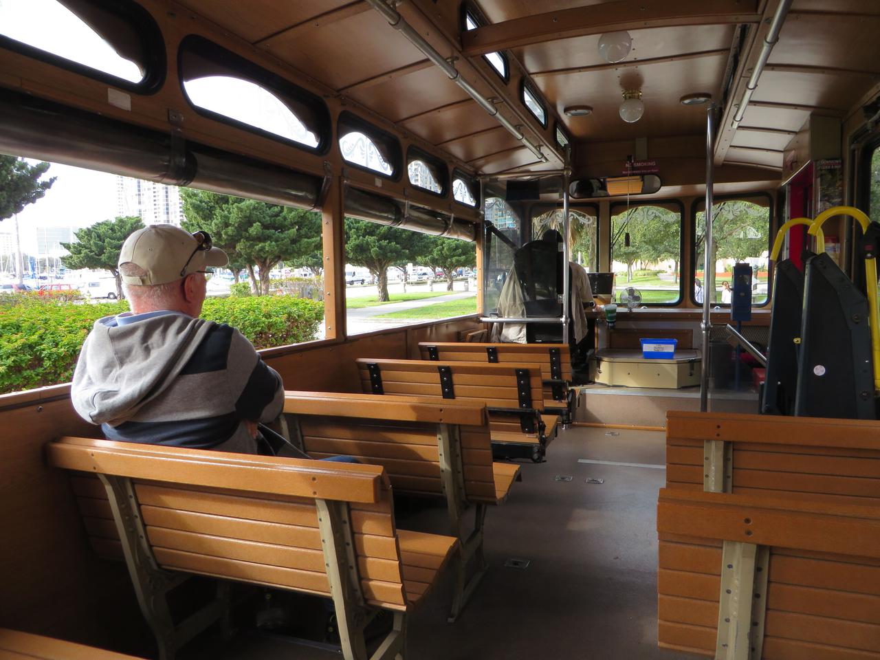 Zuerst sind wir allein im Shuttle, dann aber steigen noch andere Leute zu.