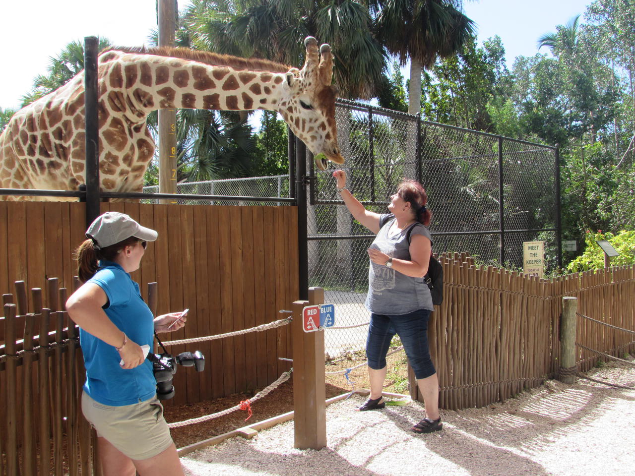 Vorbei an Schildkröten, Geparden und Alligatoren kamen wir zu den Giraffen, die Eva natürlich füttern mußte. Drei Blatt Salat für ein paar Fotos.
