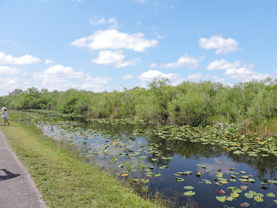 Endlich ging es in die Everglades! Mein persöhnliches Highlight. Von unserem Hotel brauchten wir ca 1 Stunde. Schon am Anfang der Sumpflandschaft konnte man erste Alligatoren am Straßenrand liegen sehen. Wir fuhren als erstes ins Shark Valley Visitor Center und mieteten uns Fahrräder. Neben dem Radweg verlief ein kleiner Bach und wir konnten einige Alligatoren sehen. Sogar kleine Babys