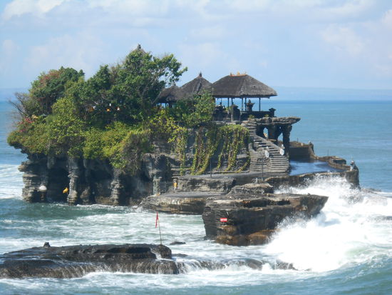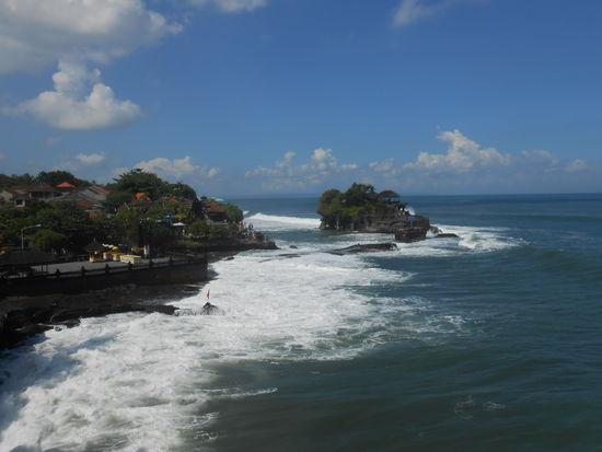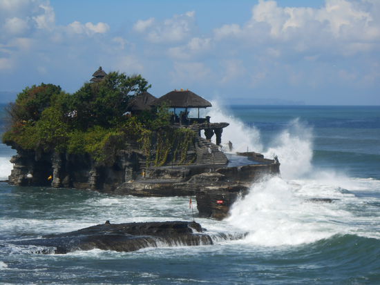 Das Meer lieferte eine sagenhafte Vorstellung, die Wellen peitschten und brachen mit dramatischen Wasserfontänen am Felsen des See-Tempels. Es war schon unglaublich schön. Gerne wäre ich noch länger geblieben, um die einzigartige Atmosphäre zu geniessen. Die gute Nachricht, man kann in Tanah Lot übernachten.