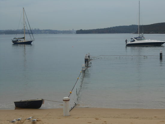 Manly Beach bei schlechteren Wetter- bei Sonne kann jeder. Wahrscheinlich habe ich einen der ca 30 verregneten Tagen in Australien ausgerechnet bei meinem Besuch erwischt.