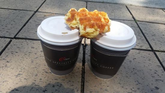 Auf der Suche nach Frühstück erreichten wir wieder die Twin Tower. Sie ziehen uns irgendwie magisch an. Wir kauften im Supermarkt Käse und Getränke, in der Bakery Brötchen und Waffeln und für Uta noch zwei Kaffee – ein prima Frühstück bei bestem Wetter mit Blick auf die Türme. Ganz wunderbar!