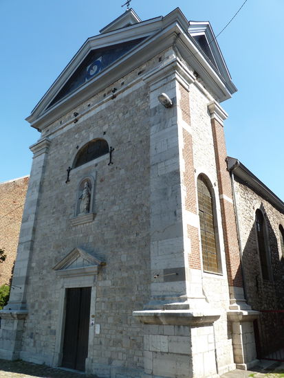 Die Fassade wurde 1897-1898 erneuert - ebenso wurden die Turmhelme zu dieser Zeit nach Plänen von Fisenne errichtet - der untere Teil des Südturms stammt von der ersten an dieser Stelle im 12. Jh. erbauten Kirche und stellt somit das älteste erhaltene Bauwerk Eupens dar