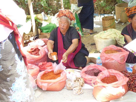 Alle 5 Tage findet ein großer Markt zu dem die Menschen aus den weitverstreuten Dörfern zum Verkaufen kommen. Ein buntes Bild mit sämtlichen Gemüsesorten, Gewürzen, Obst, Fisch, Hendln, ... schön aufgetürmt und dahinter die bettelnußkauenden Bauersfrauen.