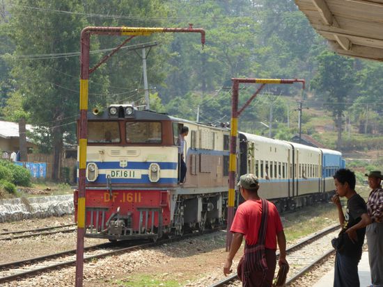 Am Samstag ging unsere Reise weiter mit dem Zug zum bekannten Inle-See. Das war ein lustiges Auf und Ab und Hin und Her, ca. 3 Stunden lang für 60 Kilometer.